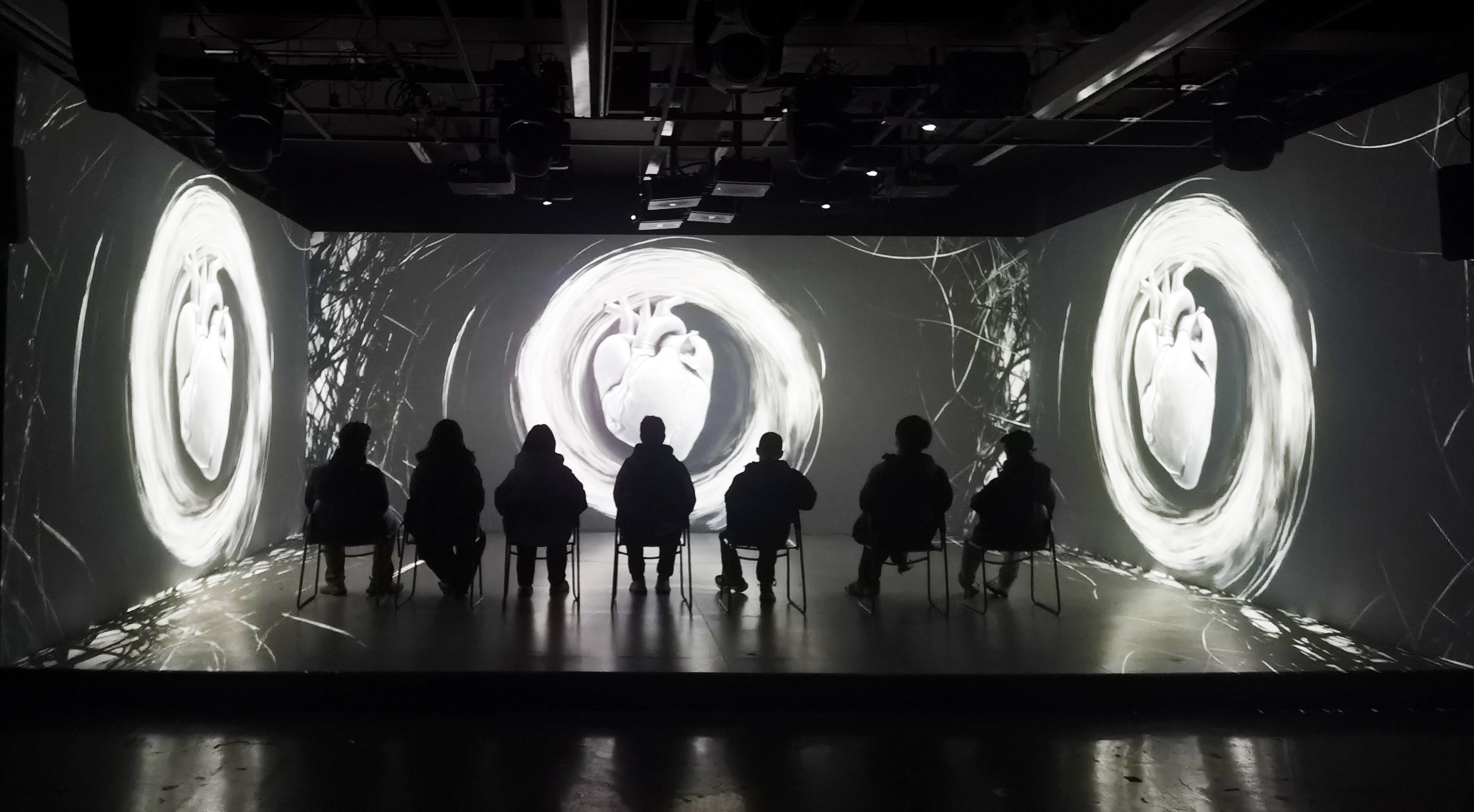课程首先系统介绍了沉浸式光影疗愈空间的底层原理,从技术的实施路径,分析“人-空间”的实时交互和“被动观看”到“主动参与”的转变。同时采用声音合成与空间音效技术为体验的同学展示听觉维度的沉浸感,通过 3D 音效、白噪音、自然声等元素的精准搭配,引导体验者的情绪状态向疗愈方向趋近。其次,从疗愈视角出发,梳理“感官刺激的可控性”调节人体生理与心理状态,利用心理学中的“感官脱敏疗法”逻辑,分析艺术治疗中“情感表达与释放”的核心诉求。最后介绍了该领域的交叉应用场景案例,从专业医疗机构拓展至美术馆、商业空间、校园等,分析该专业领域的交叉融合方向,以提升学生创新实践与工程应用能力。
